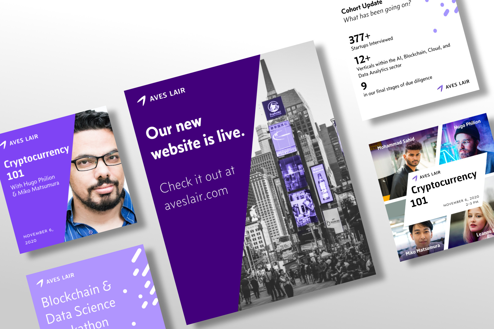 Aves Lair was a tech startup accelerator launched in 2019. As a design intern tasked with rebranding it’s visual identity, I took inspiration from the name Aves Lair, which means "a nesting ground for birds" (infant birds yet to take flight), symbolizing young startups being nurtured to prepare to spread their wings. I designed a simple abstract mark that captured the feeling of "flight". Like a Rorschach test, it resembles many things—a rocket taking off, a bird with its wings trailing in flight, or an arrow pointing upwards. In combination with other brand assets like the typefaces, colors, and design elements, I gave Aves Lair a professional face reflecting its ambitions to help the most cutting edge startups in new technologies take flight.