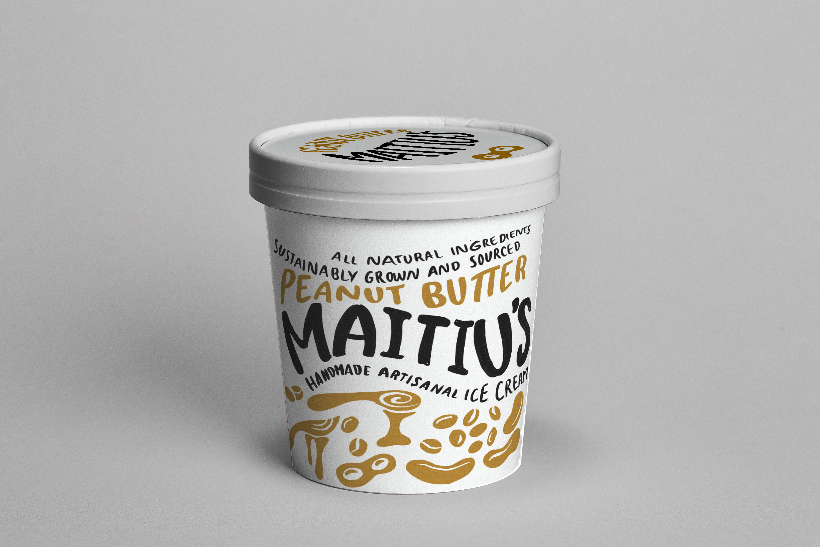 Maitiu’s is an imagined small artisanal ice cream brand. Using artisanal methods, Maitiu handcrafts his ice cream in a way that allows the natural flavors to shine through, avoiding artificial additives and preservatives. To express Maitiu’s disctinctive, hand-crafted identity, I illustrated brand touchpoints using free flowing handlettering and playful illustrations that feel friendly and personal, rather than corporate and mass produced. The visual identity expresses the vision of an ice cream brand that does good from harvest to scoop.